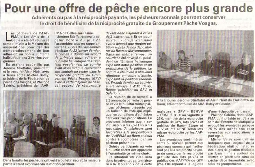L'Entente Halieutique des 3 Vallées Vosgiennes (E.H.3.V.V.) est un groupement réciprocitaire comprenant les A.A.P.P.M.A. suivantes : A.A.P.P.M.A. de la Vallée De Celles-Sur-Plaine A.A.P.P.M.A. d'Etival-Clairefontaine A.A.P.P.M.A."Les Amis De La Gaule" (Raon L'Etape) A.A.P.P.M.A. "Les Pêcheurs Vosgiens" (Saint-Dié Des Vosges) A.A.P.P.M.A. "Le Maubré" (Saint-Michel-sur Meurthe)