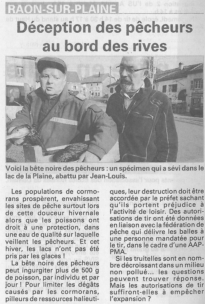 Article Vosges-Matin du 1er mars 2014 à propos du tir du cormoran